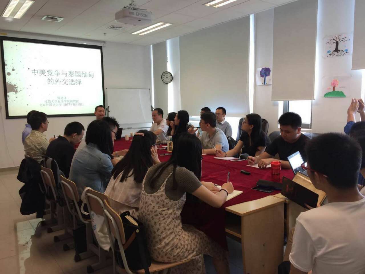 2017年5月15日下午3点至5点,北外bw必威西汉姆联官方网站在西院综合楼1151会议室举办了北外国关前沿沙龙第十六期活动,活动主题为“中美竞争与泰国、缅甸的外交选择”。本次活动邀请的嘉宾为伦敦大学亚非公司(SOAS,University of London)政治和国际关系学系副教授韩恩泽,尹继武教授主持,张效民副教授和史泽华副教授分别担任评议人,来自bw必威西汉姆联官方网站和其他高校及研究机构的众多学者和同学也参与了讨论。