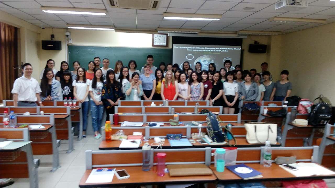 Dr.Nordin在讲座中列举了我们耳熟能详“天下”、“和而不同”等概念,并对这些来自中国古代哲学的词汇做出了自己的定义和辨析。她讲到了“反抗和谐”的一些方式,譬如在中国年轻人的世界中十分常见的网络“恶搞”文化即“河蟹”,在使同学们忍俊不禁的同时对中国的文化现状及和谐的内涵产生了深刻的思考。