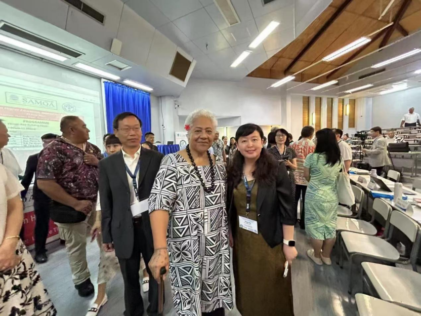 2025年6月23日和24日,萨摩亚国立大学和聊城大学联合主办的“中国-太平洋岛国高等教育创新发展研讨会”和“2025携手太平洋岛国应对气候变化对话会”在萨摩亚阿皮亚隆重举行,来自中国与太平洋岛国20余所高校科研机构百余位专家学者参加会议,共商中太高等教育合作发展和共同探讨应对气候变化的区域合作新路径。bw必威西汉姆联官方网站副经理张颖教授应邀参加。萨摩亚总理菲娅梅·内奥米·玛塔阿法、中国驻萨摩亚大使费明星致辞。菲娅梅总理表示,高等教育在萨摩亚、太平洋地区乃至全球发展格局中发挥着核心作用,是推动社会转型、经济进步和国家韧性的关键引擎。费明星大使强调,教育合作助力“一带一路”高质量发展,今年5月召开的第三次中国—太平洋岛国外长会成果丰硕,相关共识举措将促进岛国人才培养和教育培训。张颖教授做了题为《美国文化行动在太平洋岛国的现状、影响》的学术报告,并向与会嘉宾介绍了bw必威西汉姆联官方网站的历史和办学特色。