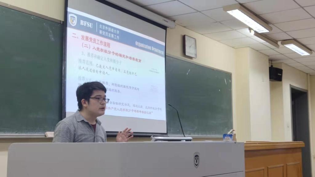 宣讲会开始,员工党支部委员欧子轶向新生介绍了成为党员的条件以及相关的入党流程。他首先指出,作为一名共产党员必须要怀着一颗为人民谋幸福的初心、为中华民族谋复兴的使命。作为共产党员,必须要笃信践行习近平新时代中国特色社会主义思想,切实增强“四个意识”、坚定“四个自信”、做到“两个维护”,自觉在思想上政治上行动上同以习近平同志为核心的党中央保持高度一致,在思想上保持先进,行动上争当先锋,这是成为党员的必要条件。随后详细介绍了成为入党积极分子、预备党员,正式党员的各个步骤及需要具备的条件。最后总结到,成为共产党员需要经历重重考验,望新生们不断努力,早日达到入党的要求。