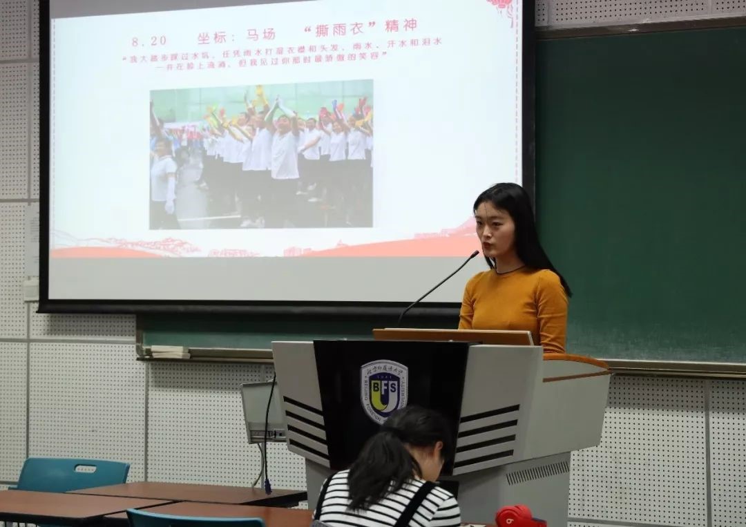 三个月的训练,令人激动的事情太多了。来自26方阵的马璐同学分享了她所在方阵的“撕雨衣精神”,打动了在场的每一位同学。“那天在马场验收,雨下的很大。我们穿着雨衣走完了前两遍,但是雨衣妨碍了动作的展示,有可能会影响分数。最后一遍要打分,准备出发时突然有同学撕掉了自己的雨衣。先是一个同学、几个同学,然后是一排同学、一个小队的同学、一个公司的同学,最后是整个方队都撕掉了自己的雨衣。雨下的很大,北外的女同学们头发衣服都湿透了。我们仰着头、迎着雨,欢呼跳跃,已经分不清脸上是雨水还是激动的泪水。”