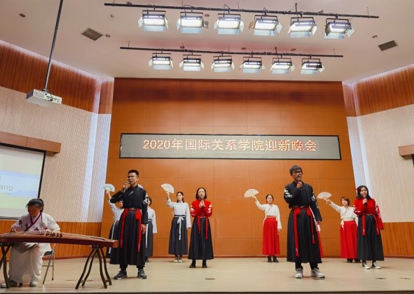 语言类节目脱口秀《生活大爆炸》、小品《北外新闻联播》、诗朗诵《门前》和《学术三句半》也毫不示弱,纷纷以或诙谐幽默或沉吟思辨的方式讲述在北外感受到的新气象。同学们大展才艺,更有小提琴独奏《沉思》、武术太极剑和古筝伴唱《凉凉》,展现才艺的同时,更向在场的各位展现了中西方文化的魅力。