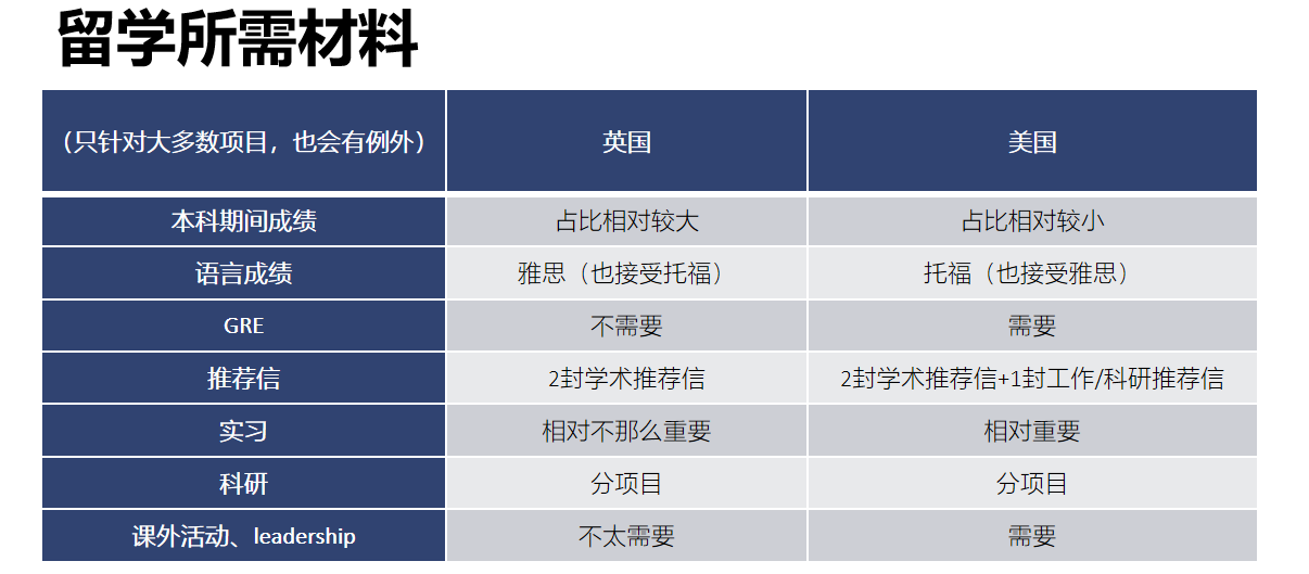 张煜昕首先介绍了关于国家、公司和专业选择时的经验,选国家要根据自身的兴趣、未来发展以及申请的复杂程度进行考虑,而公司和专业选择可以考虑自己未来的方向是就业还是学术,据此选择具体的公司和专业。她特别说道,真正重要的其实是“适不适合”,要靠预计自己在公司学到和经历到的东西,而不是只靠公司的名气。然后她具体对比分析了英美两国留学申请所需的材料不同。