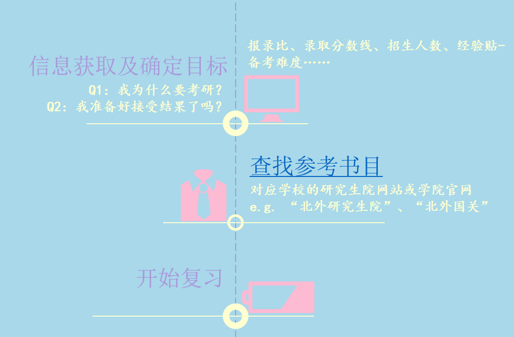 马璐首先梳理了自己决定考研的过程,她认为考研需要获取足够的信息才能最终确定自己的目标,比如:报录比、录取分数线、招生人数,以及经验贴。经验贴是分析备考难度和上岸难度的有效信息来源。