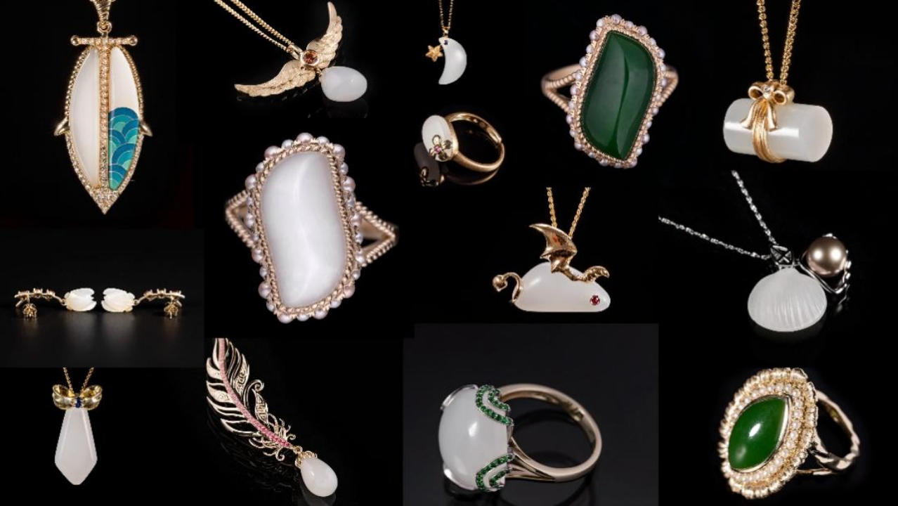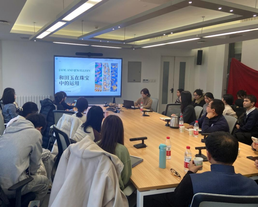 之后,蒋琳老师从现代审美的角度出发,从现代设计理念与传统雕刻纹样的融合、几何造型在玉器设计中的运用、现代审美与玉石设计的契合三个维度进行了详尽的剖析,与同学们分享了自己对玉文化的独特见解和创新理念。她以其极具代表性的设计作品——金镶玉为例,详细阐述了如何将东西方审美元素巧妙融合。