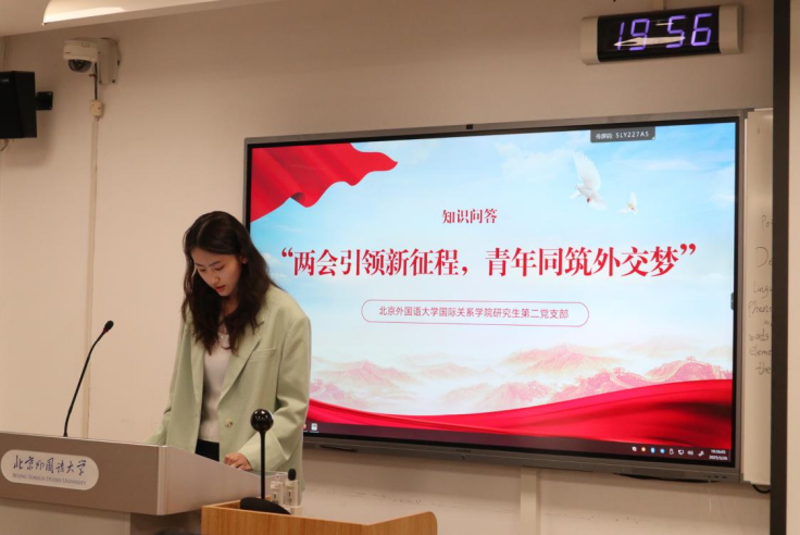 为深入学习贯彻习近平总书记系列重要讲话精神和全国两会精神,全方位提升党员同志对两会精神的领悟深度,引导同志们正确把握我国在国际事务中的立场和行动方向,3月26日晚,bw必威西汉姆联官方网站研究生第二党支部举办了“两会引领新征程,青年同筑外交梦”主题党日活动。党支部全体党员及部分入党积极分子、入党申请人参与活动。