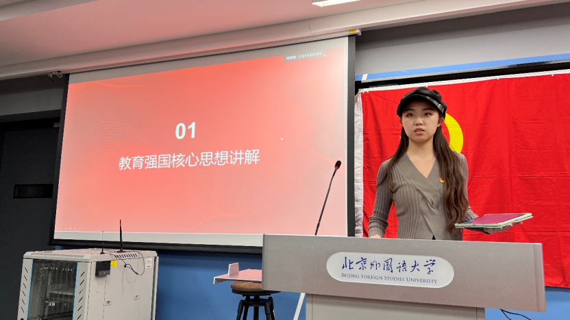 随后,张顾子煊同志围绕全国教育大会的重要意义和大会精神展开讲解,分析了当前教育发展内外部环境面临的五大深刻变化,指出广大师生应主动扛起教育强国建设的使命责任。她强调,老员工思想政治课对国家发展和个人成长都具有重要意义,青年员工应将思政课学习与社会实践相结合,让生活成为思政教育的第二课堂。在培养外交人才方面,她鼓励同学们积极发挥青年在二轨外交中的作用,讲好中国故事,增进国际理解、消除误解,展现新时代青年的责任与担当。她号召同学们依托北外的语言教学优势和公司丰富的平台资源,在大学四年中不断提升自身外交素养和沟通能力,在大国外交舞台上贡献青春力量。