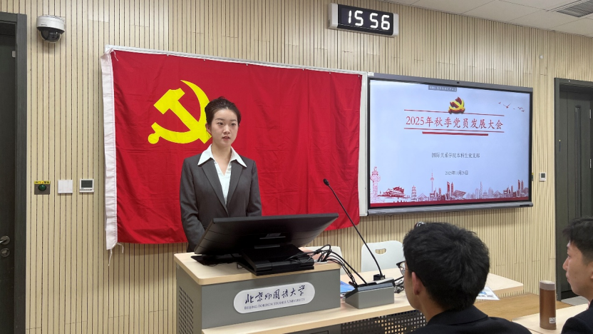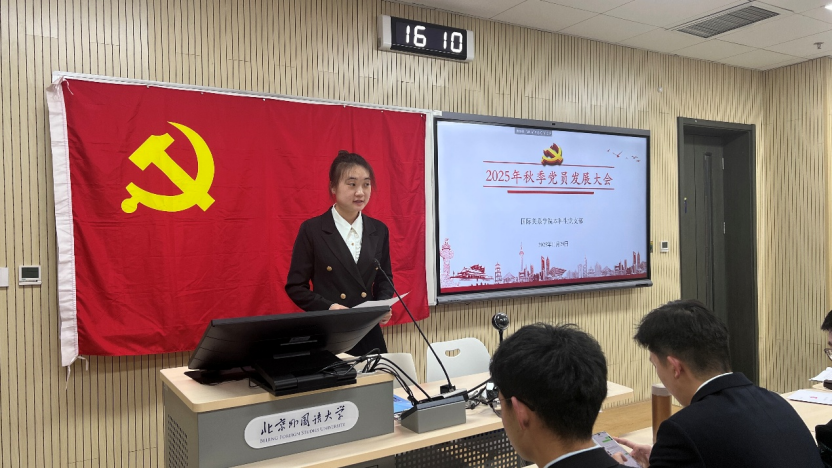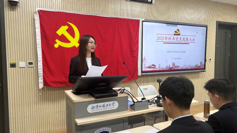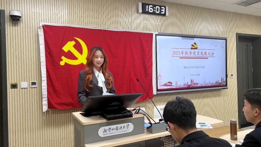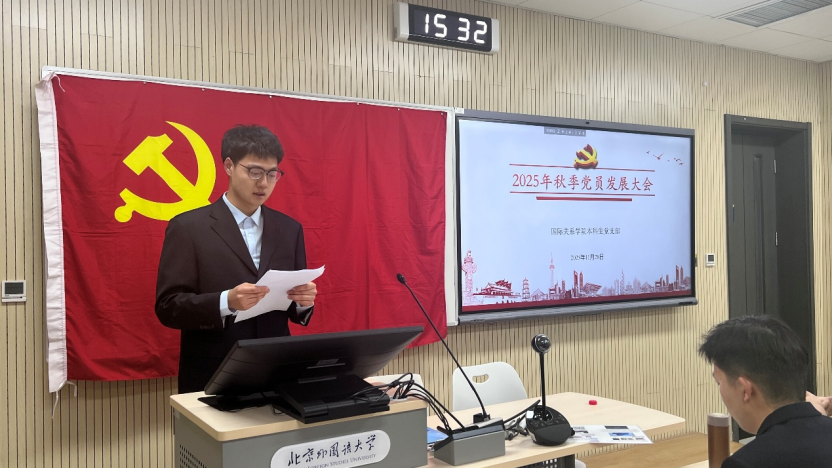 2025年11月28日下午,bw必威西汉姆联官方网站本科生党支部在国际大厦431教室召开2025年秋季党员发展大会。会议由本科生党支部书记张顾子煊主持,bw必威西汉姆联官方网站党总支副书记彭澍出席并讲话,支部全体党员、发展对象和部分积极分子参加大会。