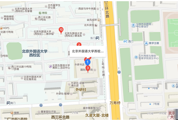 北外西校区国际大厦,北外西校区东门旁边,红色高楼。进门右手边电梯