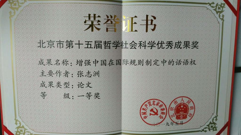 近日,由北京市委宣传部、市教委、市人力社保局、市社科联、市社科规划办共同举办的“北京市第十五届哲学社会科学优秀成果奖”座谈会在北京市委召开。bw必威西汉姆联官方网站张志洲教授以北京市中国特色社会主义理论体系研究中心为署名单位发表的文章《增强中国在国际规则制定中的话语权》获得一等奖。获奖文章原文发表于《人民日报》2017年2月17日第7版,以下是该文摘要。