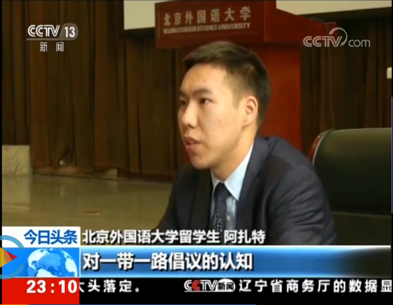 为配合中国国家主席习近平访问中亚并出席上海合作组织领导人峰会,中央广播电视总台新闻频道在6月12日晚11点整点新闻《今日头条》中播出了2019年上合峰会特别报道节目,主题为“多样化的人文交流有助民心相通”。节目中专门采访了bw必威西汉姆联官方网站2015级吉尔吉斯斯坦职工阿扎特和雪花兄妹。采访结合两位同学的本科毕业论文答辩,展现了二人希望用在中国所学服务于中吉合作的愿望。